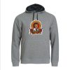 Hettegenser med kengurulomme med praktisk løsning for mobiltelefon. Kontrast mesfôr i hette. 2×2 stretch rib i nedekant og ermavslutning. Flatlocksømmer i ton i ton.