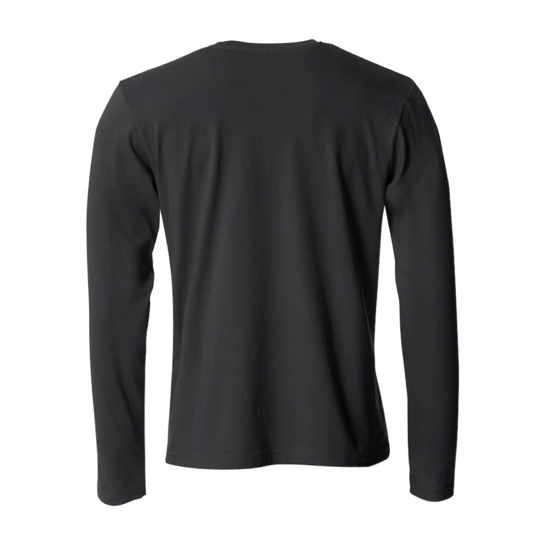 Langermet t-shirt med god passform, bånd i nakke og elastan i halsribb. Herremodellen er rundstrikket og dame har sidesømmer.
