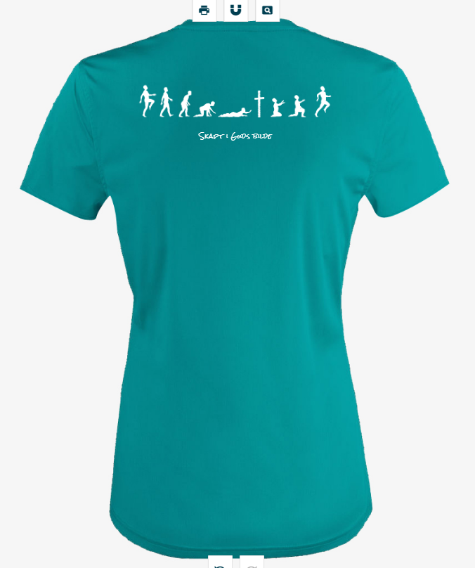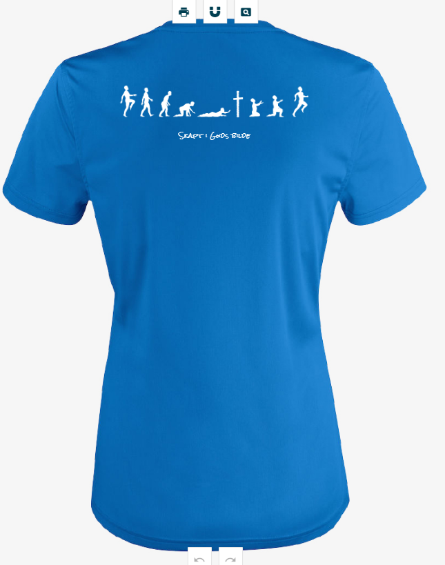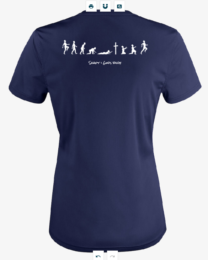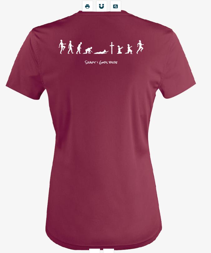 Print er kun på baksiden. Tekst: Skapt i Guds bilde