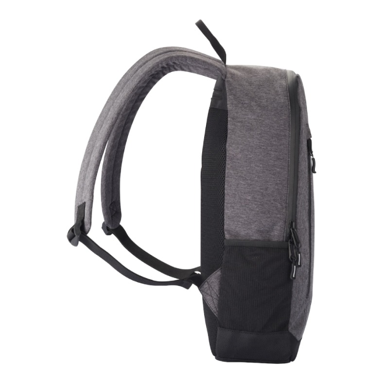 Lett og fin ryggsekk med et stort hovedrom. Vattert lomme til PC. Glidelåslomme i front og mesh lommer på begge sider til små ting man trenger rask tilgang til. En lomme bak for sikkerhetslagring. TPU glidelåser og reflekterende zip pullers.