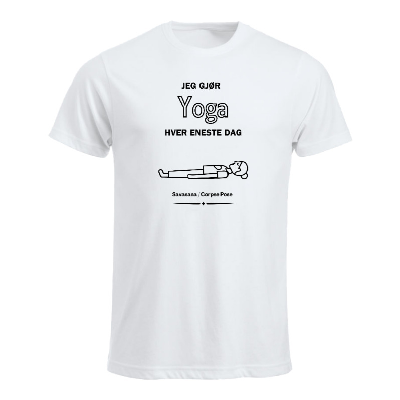 Herre “Jeg gjør Yoga hver dag” hvit trykk